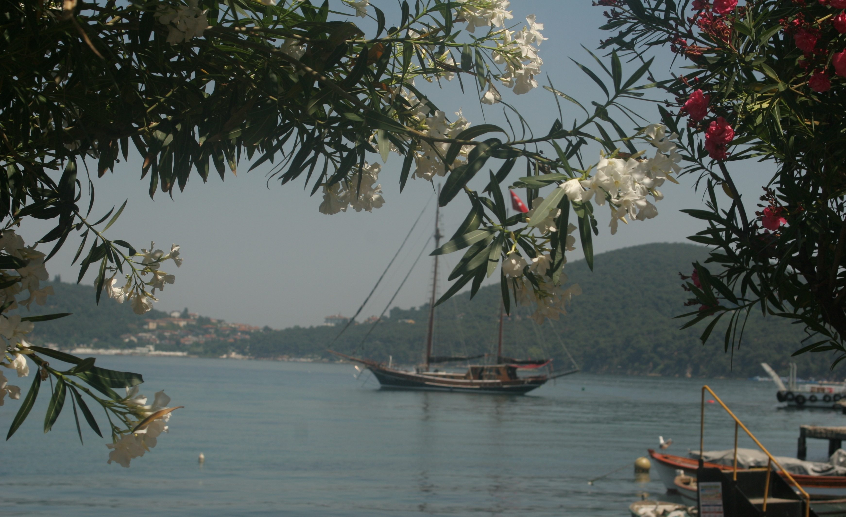 Vapurdan indikten sonra bir cafede oturup çektiğim karelerden biriydi. Önce tekneyi denizle çekmeyi denedim. Sonra bu çiçekleri bulup, teknenin etrafına estetik veren bir çerçeve yaratmayı tercih ettim. Çiçekler ve tekne konulu bir kompozisyon oluştu…
