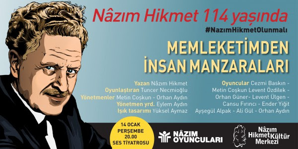 Nâzım Hikmet Kültür Merkezi, Nâzım Hikmet’in 114. yaşını “Memleketimden İnsan Manzaraları”yla Anadolu’nun her köşesine taşıyacak. Kültür merkezinden yapılan açıklama şu şekilde: