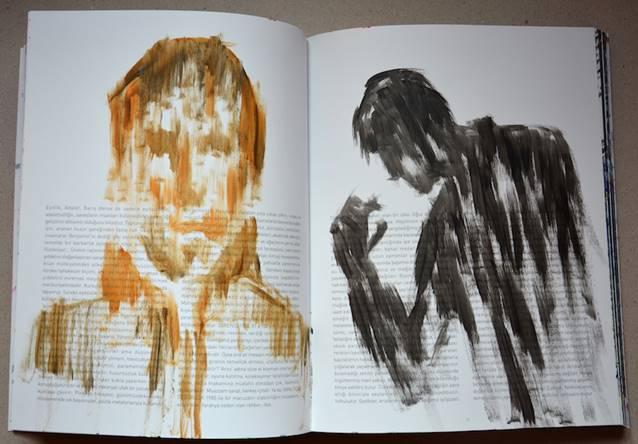 Bir kaç yıl önce ziyarete gittiğim Frankfurt kitap fuarında ‘Artist’s Book’ salonuna girdiğimde gördüğüm örnekler karşısında çok heyecanlanmıştım. Üzeri karalanmış masa takvimlerinden özel el yapımı tek örnek incillere kadar yüzlerce çalışma vardı. En çok etkilendiğim kitap, gotik karakterle elle yazılı ve örjinal boyanmış büyük boy incil oldu. Tıpkı bizim eski el yazma kitaplarımız gibi tamamı elle yazılmış, resimlenmiş irili ufaklı başka inciller de vardı. Bunların dışında yaratıcılığın sınır tanımadığı değişik kitap türleri çok heyecan vericiydi.