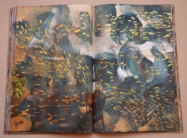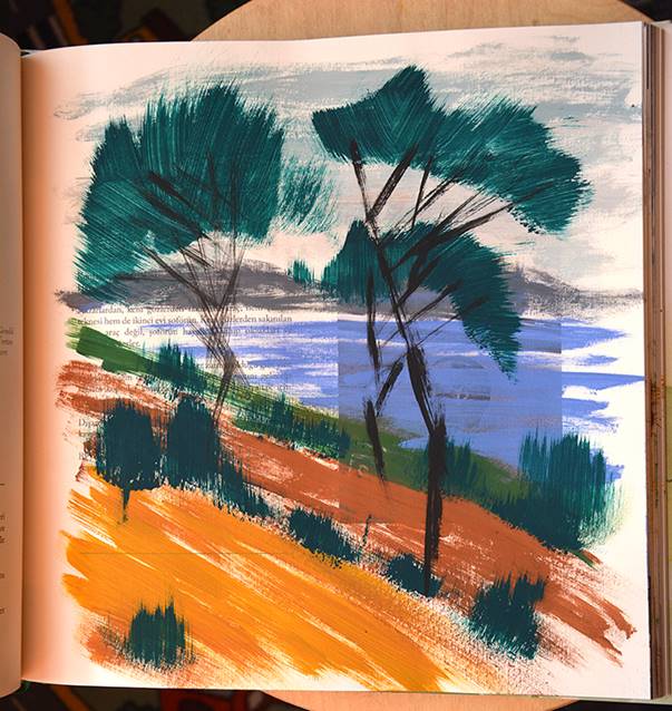 Bunların dışında tamamı boş sayfalara yaptığım çalışmalar da var. Sayfaları boş maket kitaplarını* veya boş defter sayfalarını da orjinal resimlerle doldurdum. Akrilik, guaş boyaların yanı sıra kağıt üzerine her türlü malzemeyle müdahale edebiliyorum. Fırça ve kalem dışında sünger, tel vs. malzemeleride kullanıyorum. Her kitabı farklı tarzlarda işlemeye çalışıyorum. Beni heyecanlandıran tek örnek orjinal kitap üretiyor olmak. Açtığım her sayfa dolu ya da boş farketmiyor, boyamam için bana heyecan veriyor. Sanırım bu maceram daha süreceğe benzer.