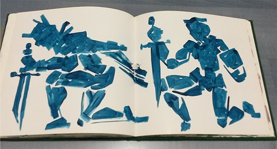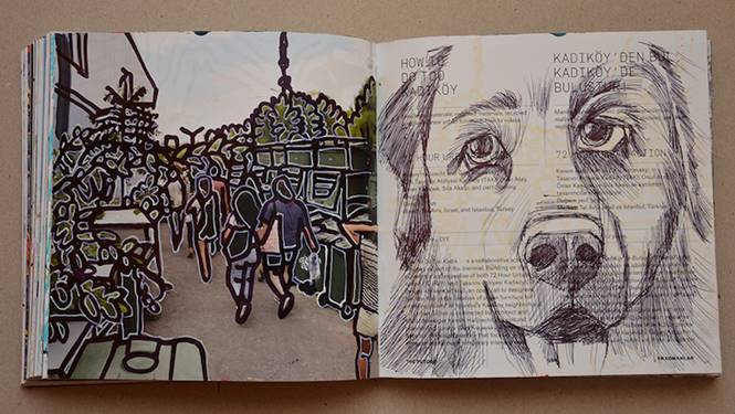 Ben de kendi kitaplarımı hazırlamak için kollarımı sıvadım. İlk kitabım tasarım bienaline ait çöpten aldığım katalog olacaktı. Kitabı hazırlarken bazı sayfaları katalogda bulunan yazı ve resimleri kapatmadan kafamdakileri birleştirmeyi denedim. Bazı sayfalarda serbest bağımsız desenlerle doldurdum.