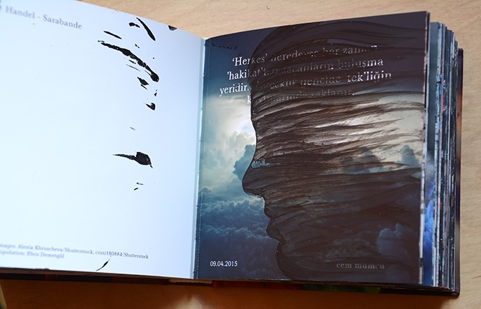 Bir başka sanatçı kitabı Mustafa Ata’ya aitti. Kitaptaki resimlerden hareketle görseller oluşturduğum gibi boş alanlarda da akrilik figür ve orjinal portreler çalıştım. Bir başka çalışmam BP şirketinin Türkiye’yi anlattığı kitap üzerine oldu. Sadece sağ sayfar üzerine yüzü aşkın akrilik çalışma yaptım. Sonraki kitap Cem Mumcu’ya ait bir kitaptı. Küçük boyda mukavva kapaklı kitabın sağında bulunan baskı resimler üzerine 116 adet portre işledim.